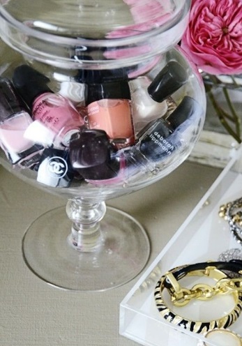 Bu yüzden genişliği büyük olan ya da uzunluğu olan bir saydam kavanoza dizebilirsiniz. Örneğin ruj biriktirmeyi çok seviyorsanız ve farklı renk kategorilerine ait bir çok ruj varsa, küçük kavanozlarla onları da ayırt edebilirsiniz.